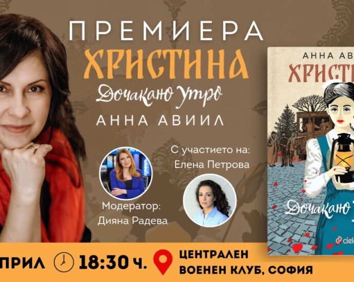 „Христина. Дочакано утро“ ще получи ексклузивна премиера в София на 21 април от 18:30 ч. в зала „Музикална“ на Централен военен клуб (бул. „Цар Освободител“ 7) Романът на Анна Авиил „Божана“ изгря на родния литературен хоризонт през 2025 година и бързо се превърна в едно от най-обичаните заглавия на пазара. Сега е времевиж повече