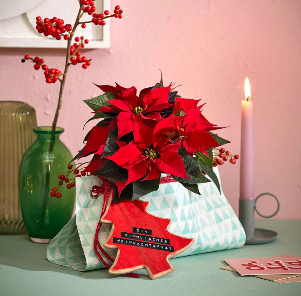 Празнично поднесена или креативно опакована, коледната звезда е красив и личен подарък. Тези впечатляващи зимни цветя са също така идеални за стилна декорация на подаръци. Като отрязани цветове те придават фин, индивидуален акцент на грижливо опакованите изненади.