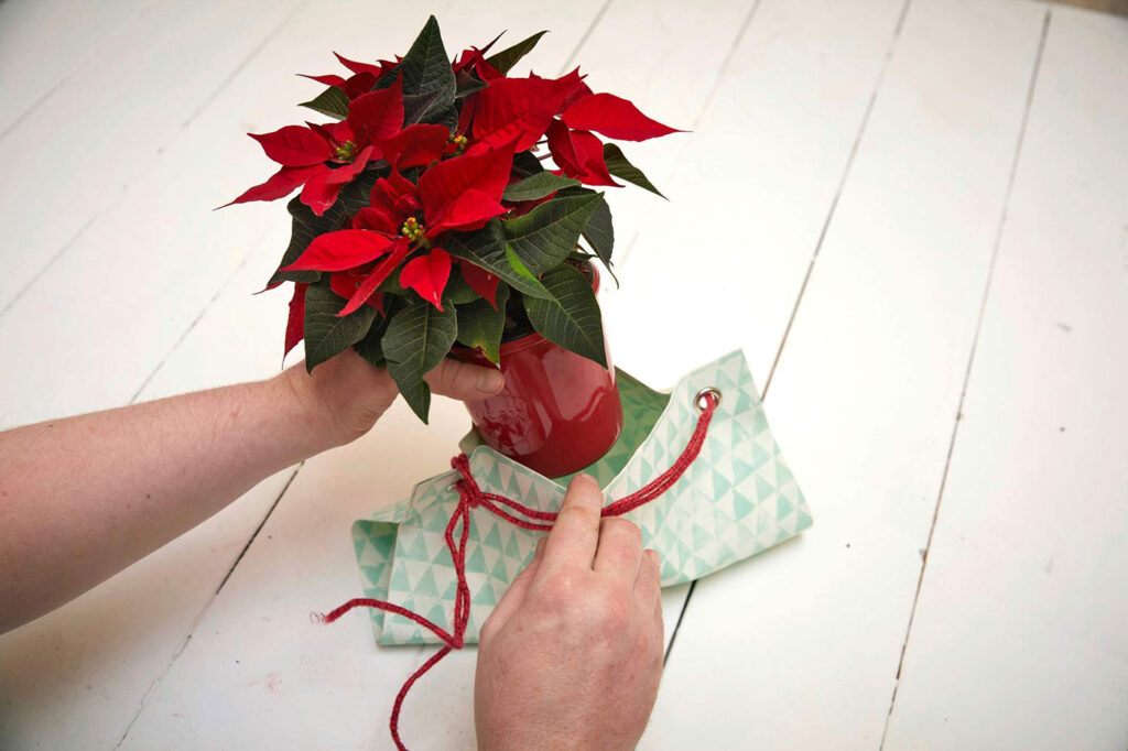 Креативната опаковка превръща класическата червена коледна звезда в наистина специален подарък. Независимо дали е поставена в ръчно изработена торбичка, или комбинирана с малки изненади в декоративна, цветна кофа, следващите идеи придават индивидуален характер на това декоративно цъфтящо растение.